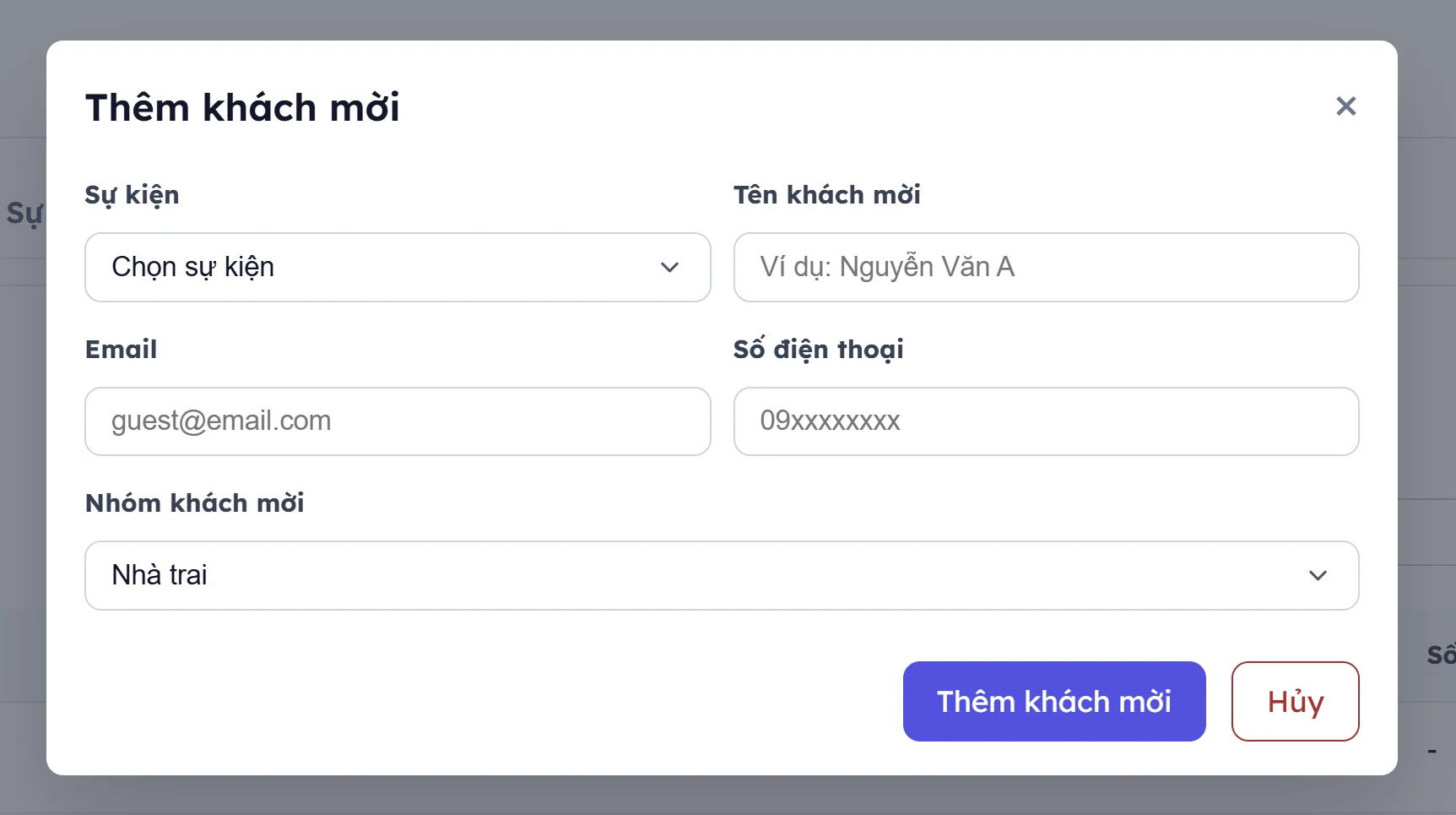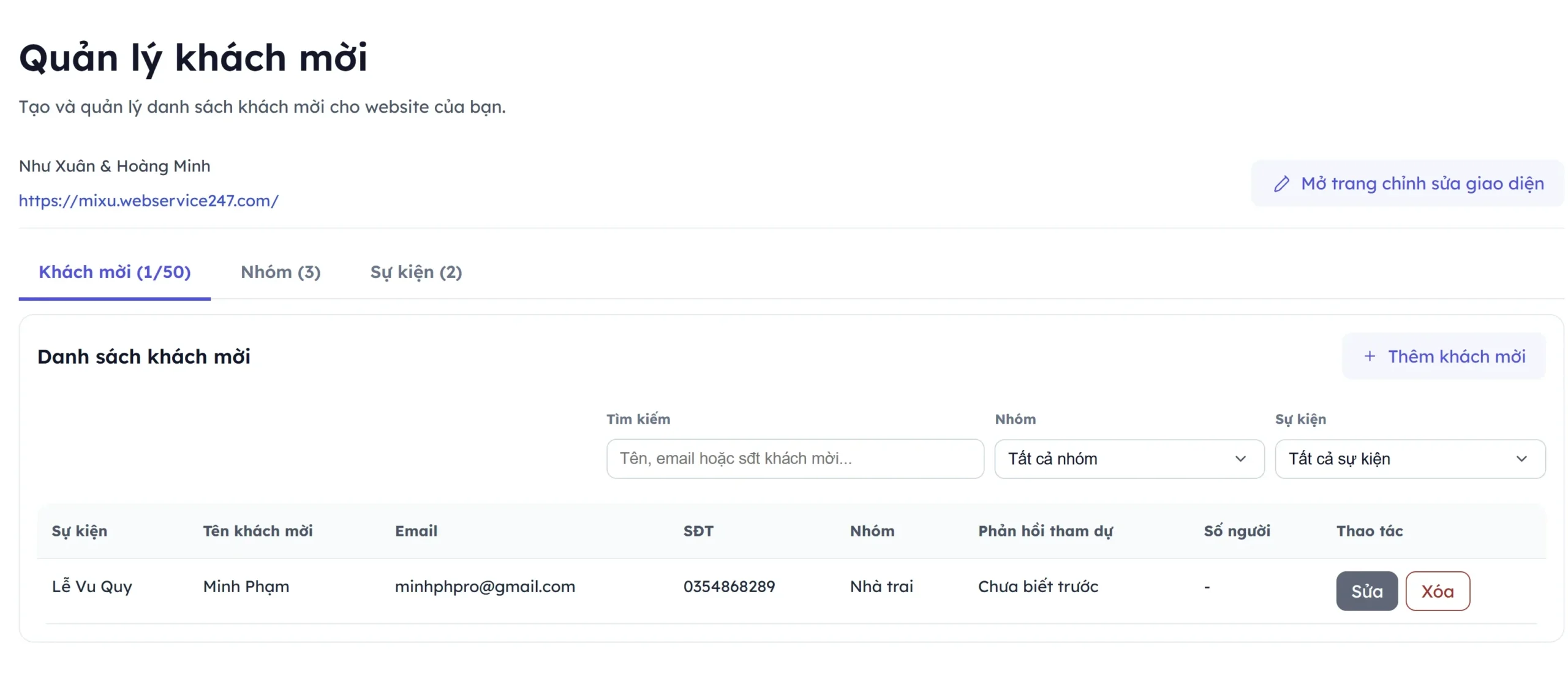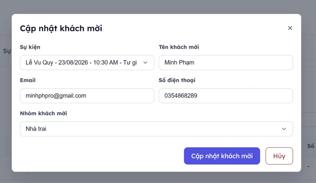 2. Thêm sửa khách mời
