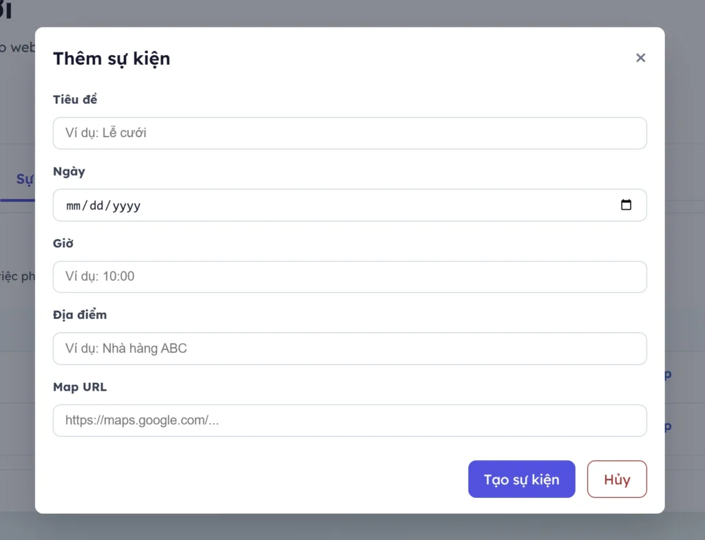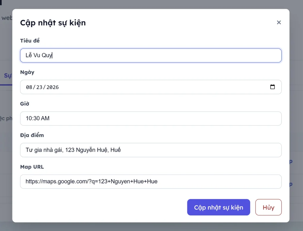 4. Thêm sửa sự kiện cưới