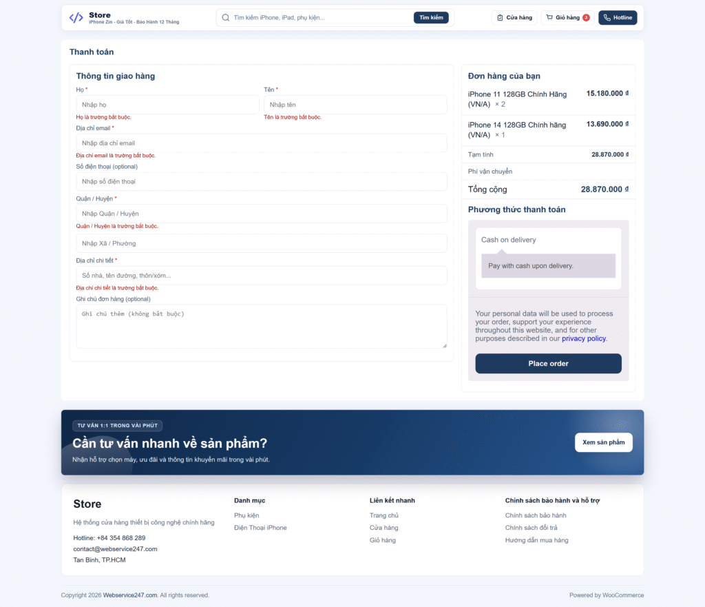 👉 Nếu checkout rối → mất đơn.